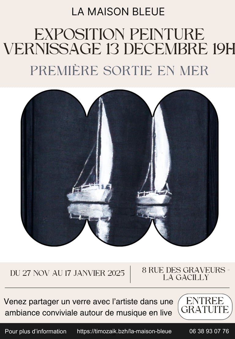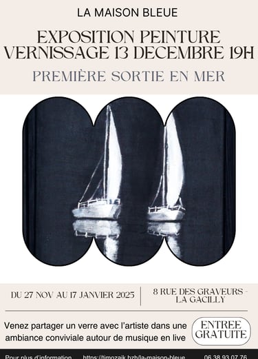 Cette exposition intitulée "Première Sortie en mer" trouve ses racines dans mon amour de la mer. À travers ces modestes œuvres, j'ai essayé de retranscrire la sérénité qui me gagne quand mon pinceau danse sur la toile.